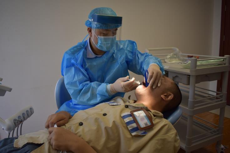 疫情期间民警为服刑人员检查身体