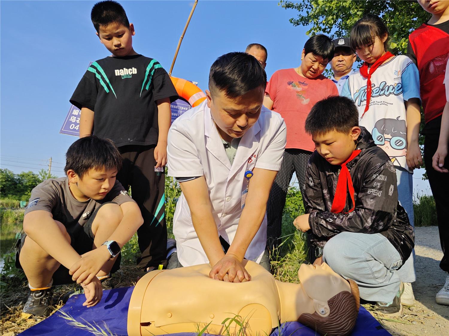 5月23日,滁州市南谯区乌衣镇侨联工作站联合乌衣镇卫生院开展“预防溺水 共护安全”主题活动。医务志愿者在水域现场科普防溺水和急救知识,增强未成年人安全意识和自救互救能力。本报通讯员 董 超 许 平 摄