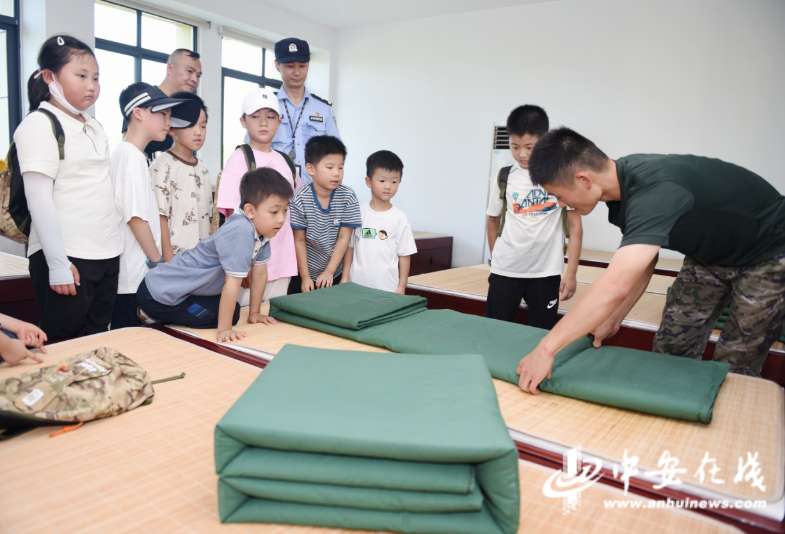 中安在线、中安新闻客户端讯 方正的被子、平整的床单、洗漱具排成一条线,孩子们眼里全是新鲜感。8月22日,安徽省蜀山监狱组织民警职工子女走进武警某部军营,开展“童心系军营 共建军警情”暑期主题活动,让警宝萌娃们零距离感受警营文化,沉浸式体验警营生活,为快乐暑期增添一抹“迷彩”。