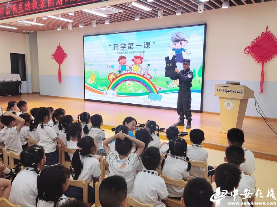 中安在线 中安新闻客户端讯 9月2日开学第一天,合肥市公安局特警支队六大队联合包河分局中山路派出所在嵩山路幼儿园开展“开学第一课”活动。民警从防溺水、防拐骗、防踩踏等幼儿们容易发生危险的方面,图文结合,配上生动的动画宣传片,给小朋友们宣讲安全知识,做好日常防范,远离危险隐患。课上,民警给小朋友们介绍警察职能并展示了常用的警用装备,与幼儿们进行体验互动,提醒孩子们正确使用110报警电话,从小做起,树立自我保护意识,提升防范能力。(宋疌谦 记者 张毅璞)