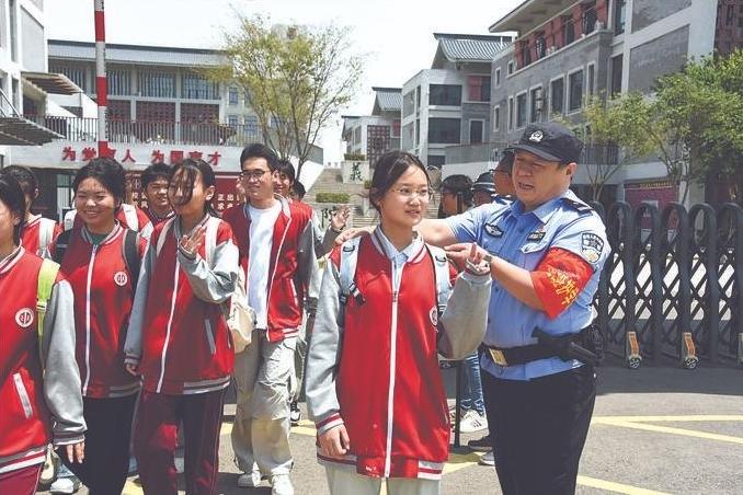 今年是我护航高考的第4年,记得2023年6月7日早晨,派出所接到群众报警,称电梯发生故障,有一名要参加高考的女生被困。我带领同事第一时间赶到现场,联合消防队员将被困考生成功救出。我们驾驶警车,一路风驰电掣,把她及时送到考点。看到她走进考点,我们还没来得及休息,又“邂逅”一名身材高大的男孩,他因腿部受伤,需要坐轮椅进入考场。看到他行动不便,我带着民警辅警,4个人像抬轿子一样,一步一个台阶,平稳地把他抬进没有电梯的四楼考场。同时,我们也宽慰他说:“别担心,你这两天上楼被我们包了,每天都抬你去考试。”