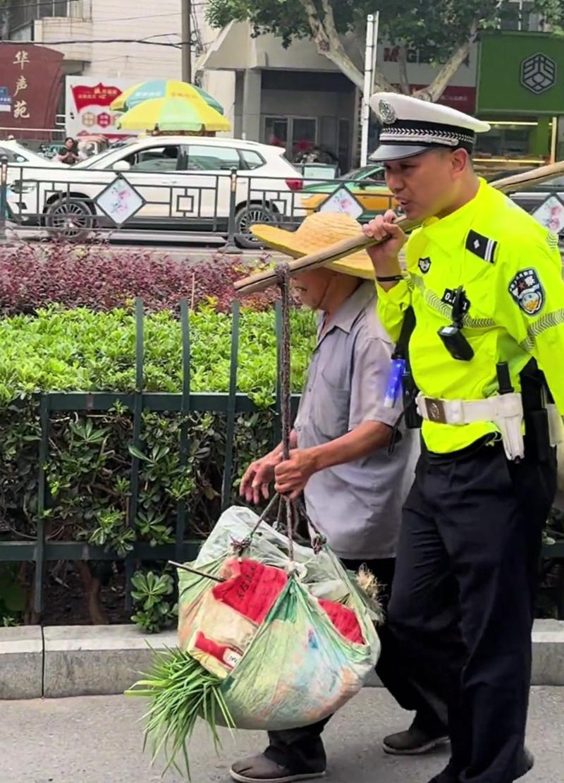 近日,一段安徽淮南交警帮助九旬卖菜老人挑担过马路的视频温暖了无数网友。视频中,一位交警稳稳挑起老人的菜担,小心翼翼地护送老人穿过早高峰的车流。网友纷纷点赞表示:“挑起的不仅是菜担,更是人民警察的为民担当!”