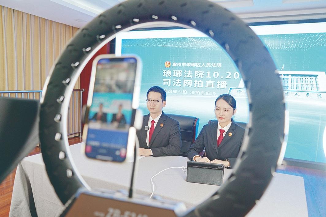 “这套房产位于市中心,起拍价22.4万元,对拍品感兴趣的朋友欢迎拨打我们的咨询电话0550-3216145,与法院干警预约看样时间!”7月18日,在滁州市琅琊区人民法院法拍直播中心,一场法拍直播正在火热进行。直播间内,弹幕不断滚动,“流程真透明”“法律知识通俗易通”的点赞声此起彼伏。