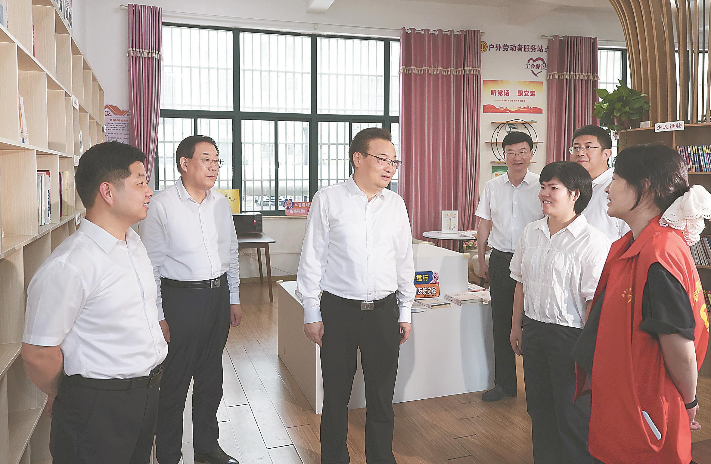 八月十一日,省委书记梁言顺在马鞍山市含山县望梅社区阳光世纪城小区实地了解城市更新、完整社区建设情况,并与社区工作人员和志愿者亲切交谈。本报记者 杨竹 许昊 摄