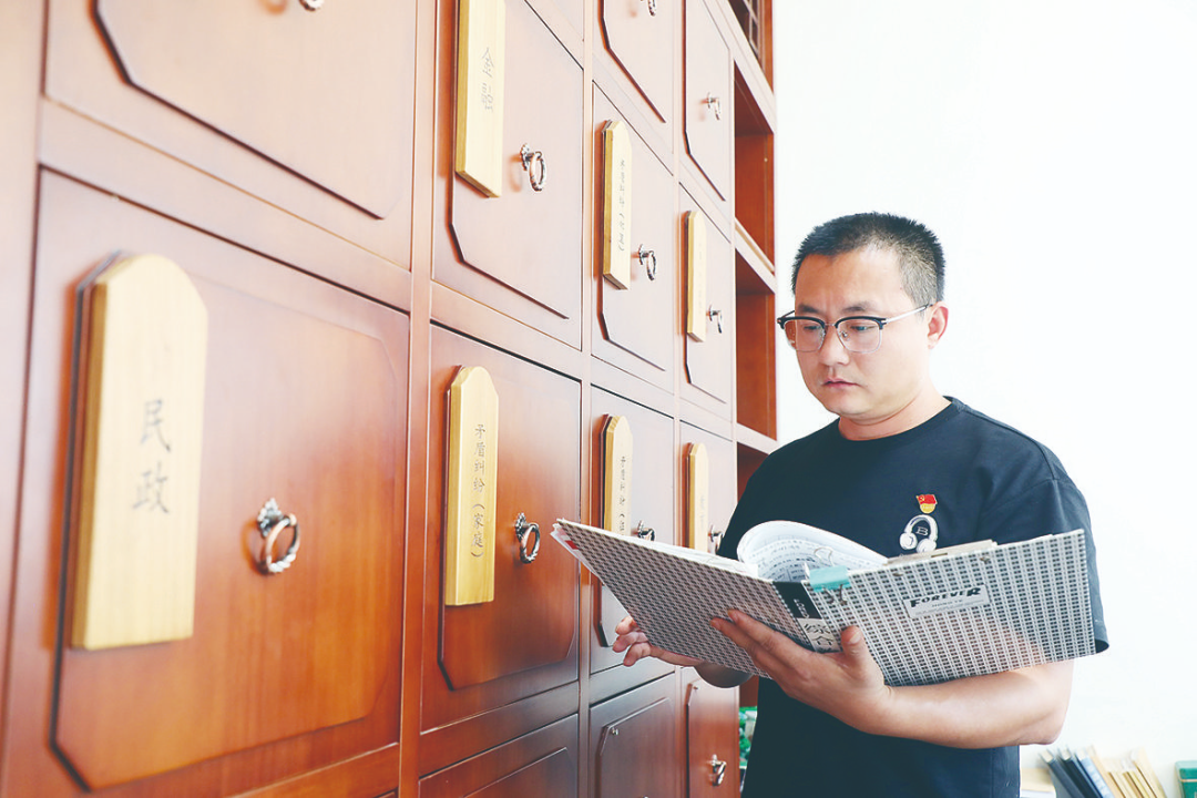 在黄山市徽州区岩寺镇富山村党群服务中心一楼,有间特别的“店铺”,名为“解忧杂货铺”。高悬着“良方”牌匾,纠纷档案收纳柜如中药柜般,分门别类标注着“土地林地”“邻里”“婚姻家庭”等字样。这里,就是庄汉东的“主阵地”,村民亲切称他为“汉东掌柜”。
