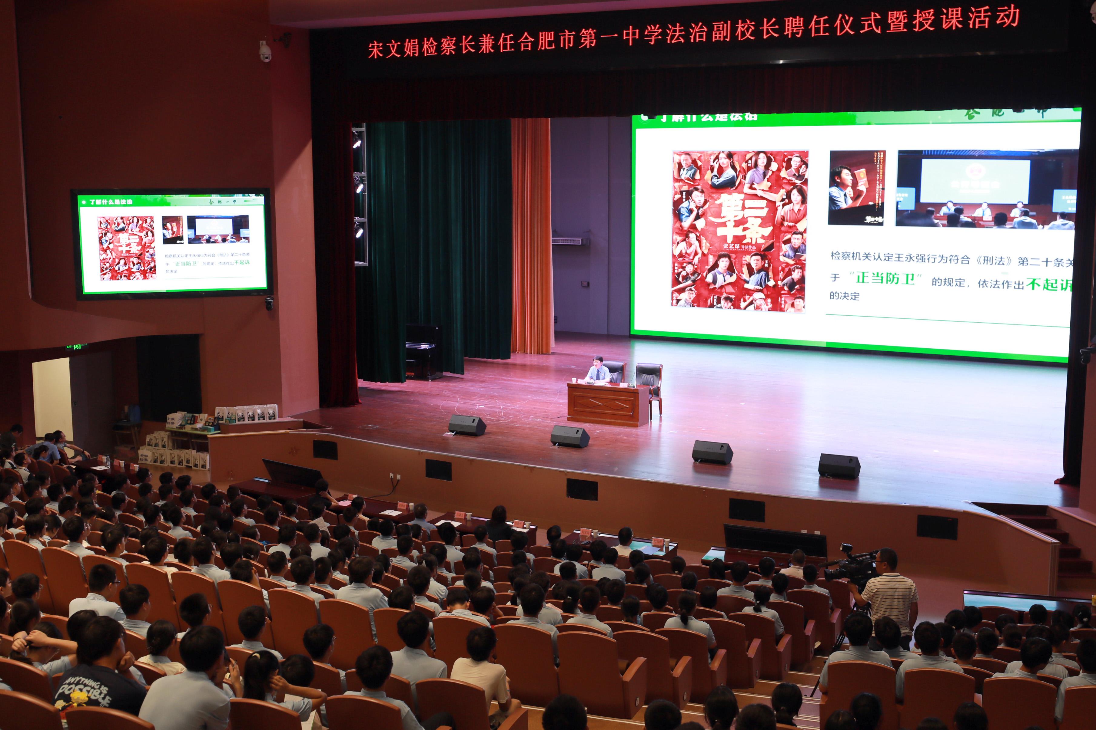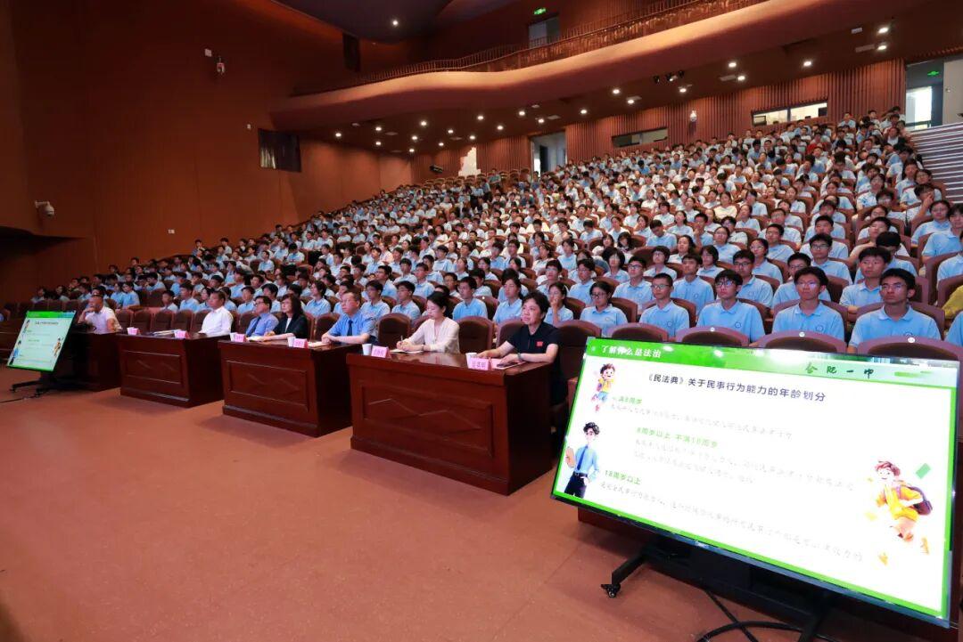 宋文娟讲授法治第一课,合肥市第一中学校长吴英明主持。
