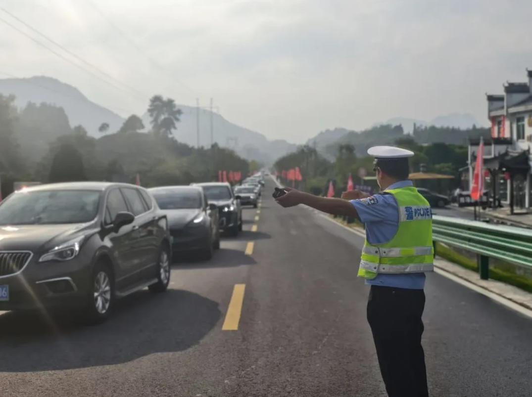 国庆中秋假期返程高峰期,黄山公安机关全警动员,坚守岗位,在全市各交通要道、重点区域积极开展交通疏导、巡逻防控和服务群众等工作,全力保障旅客平安有序返程。