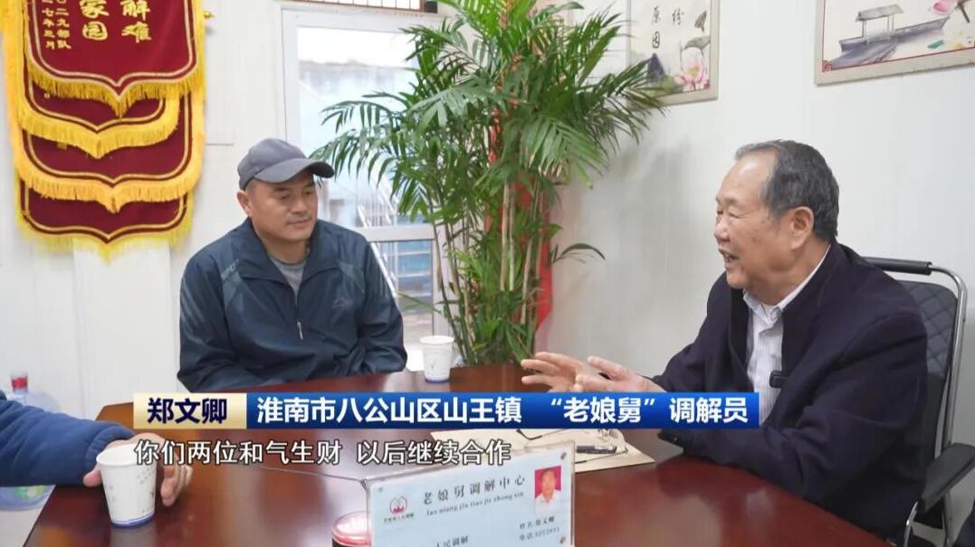 在淮南市八公山区山王镇的“老娘舅”调解中心,一场因早年运输建材欠款引发的经济纠纷正在调解中。今年78岁的调解员郑文卿,凭借退休前多年从事民警工作的经验,没有纠缠于陈年旧账,耐心劝导双方放眼未来、珍惜和气,一步步为双方搭起理性沟通的桥梁。